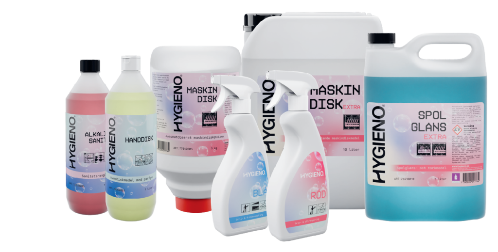 Effektiva och skonsamma diskmedel för både handdisk och maskindisk, anpassade för professionella miljöer.